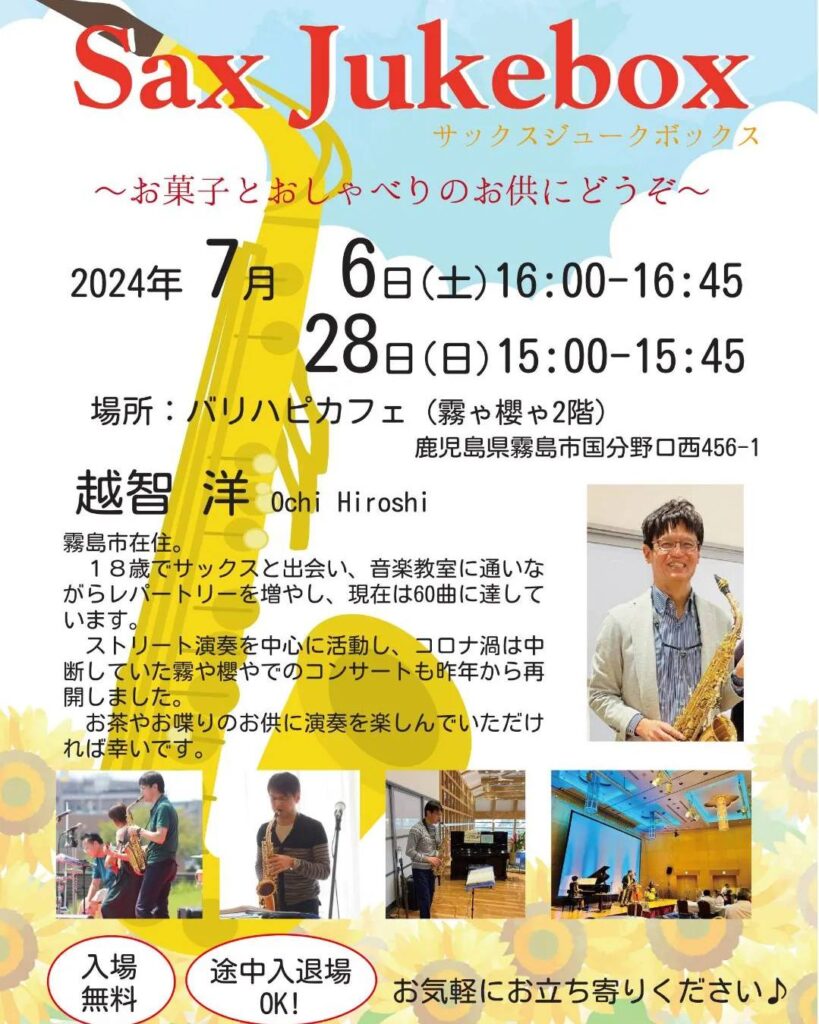 2024年7月6日(土)@16:00 – 16:45 – Sax Jukebox@霧や櫻や Sax Jukebox サックスジュークボックス お菓子とおしゃべりのお供に […]
