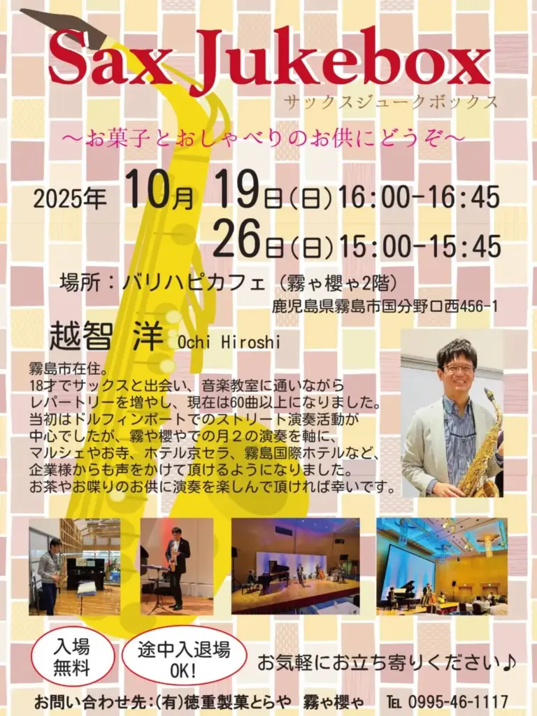 2025年10月19日(日)@16:00 – 16:45 – Sax Jukebox サックスジュークボックス お菓子とおしゃべりのお供にどうぞ