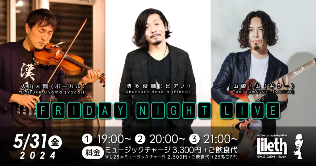 2024年5月31日(金)@19:00 – 21:30 – 博多俊輔(Pf)×大山大輔(Vo)×山崎トム(Gt) on Friday Night Live ■出演者 ・博 […]