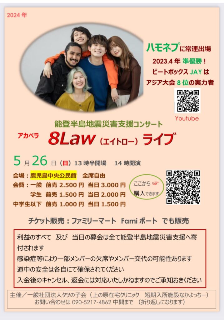 2024年5月26日(日)@14:00 – 17:00 – 能登半島地震災害支援コンサート アカペラ 8Law(エイトロー) ライブ 利益のすべて及び当日の募金は全て能登 […]