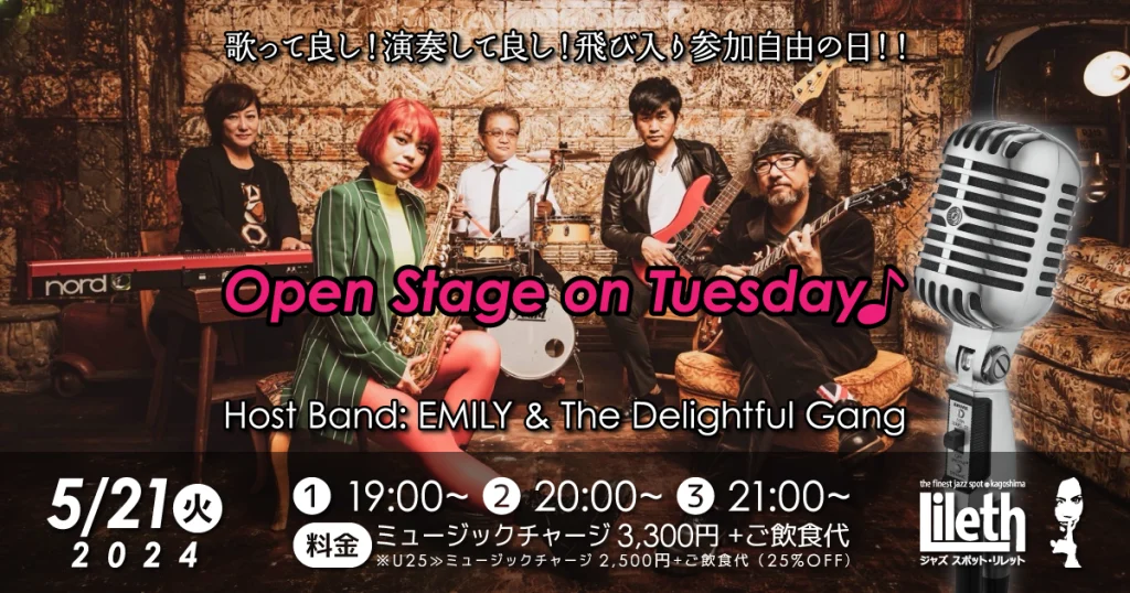 2024年5月21日(火)@19:00 – 21:30 – Open Stage on Tuesday EMILY(Vo) & The Delightful Gang 毎 […]