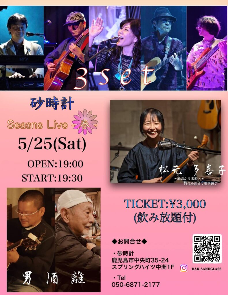 2024年5月25日(土)@19:30 – 22:00 – 砂時計 Seasns Live 春 ■出演者 ・3set ・松元多喜子 ・男酒離 ■日時 2024年5月25日 […]