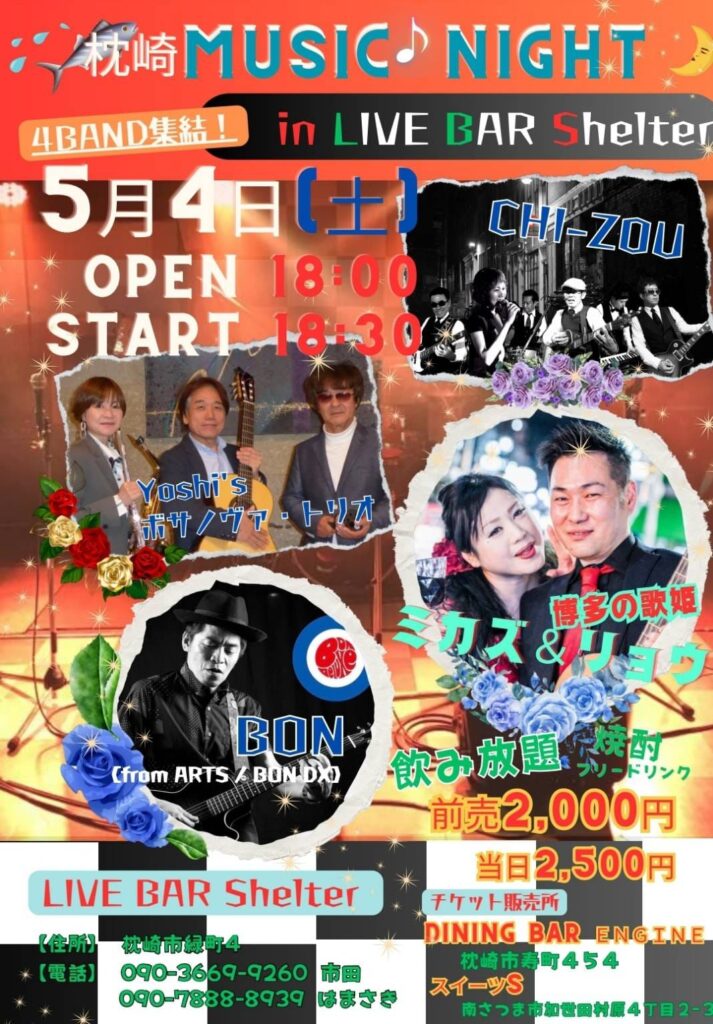 2024年5月4日(土)@18:30 – 21:00 – 枕崎 MUSIC NIGHT in LIVE BAR Shelter 4BAND 集結! ■出演者 ・CHI- […]